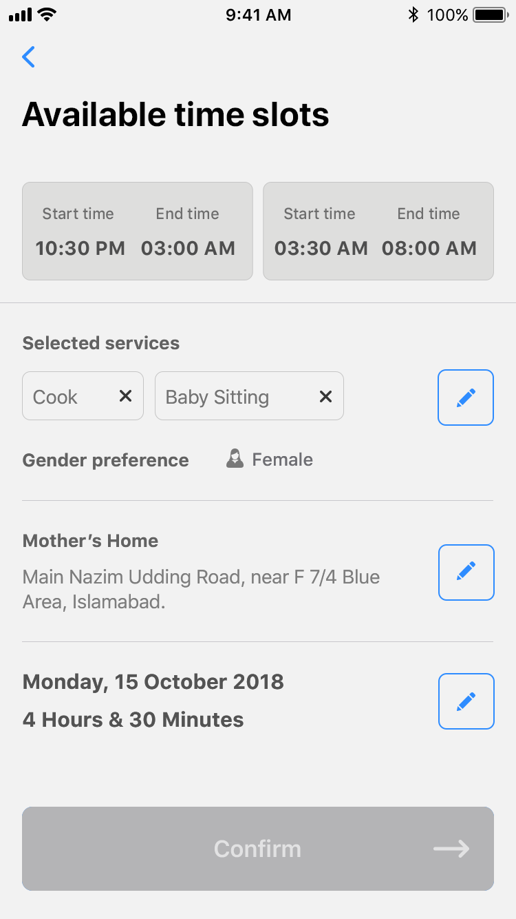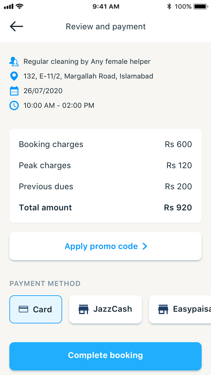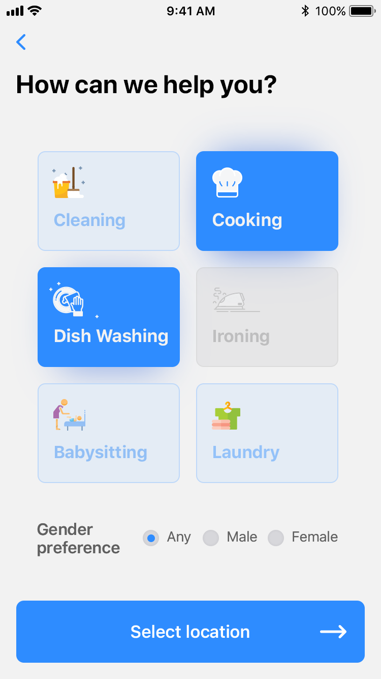 After discussing feasibility with engineering team, I had the booking API called on each service selection. This gave user instant feedback over mismatching services, such as Laundry with Cooking.