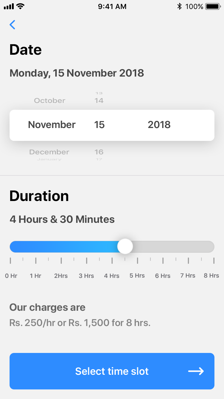I divided the form into more steps, with only one input per screen. Keeping in view our target persona of middle aged women, it was decided within the team to sacrifice speed and go for an easier form. One input per screen meant that it took longer to make a booking but this format was more convenient in providing instant feedback to the user on a mismatch, so they change their selection at each step.